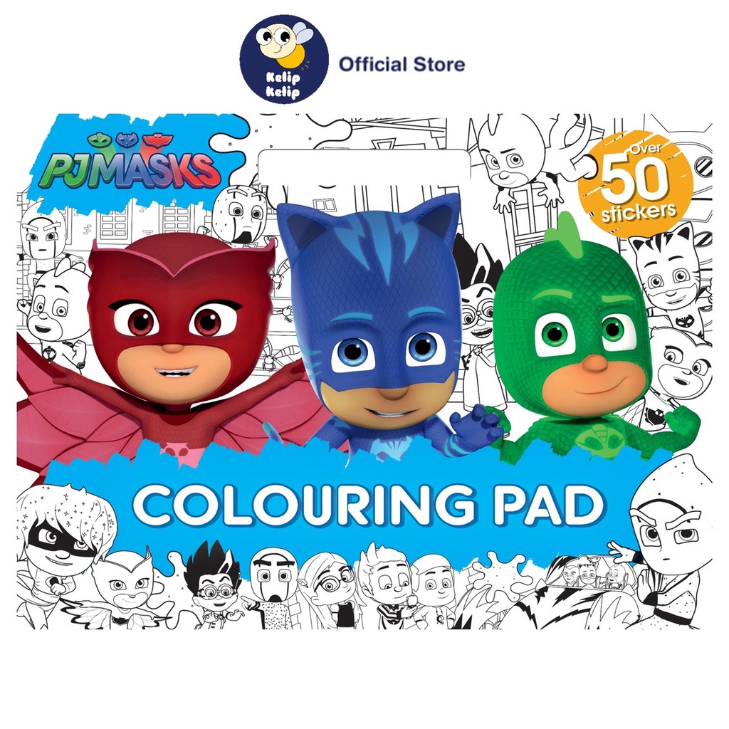 PJ Masks: Giant Colouring Pad is a coloring book based on the PJ Masks television series. Official description. Children will love this giant activity pad, featuring all of their favourite PJ Masks characters. Full of bold easy to colour pages, 50 stickers and fun activities to entertain and delight. Characters. Catboy; Owlette; Gekko