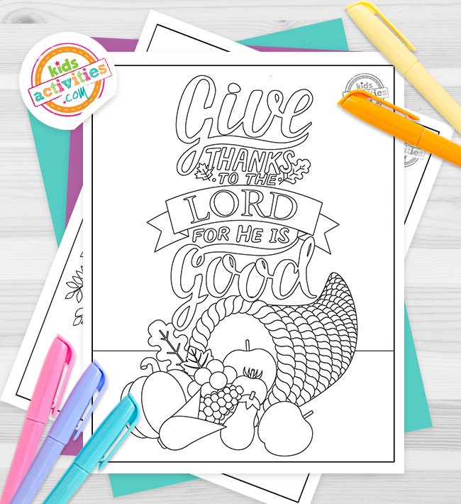 Thanksgiving Coloring Pages: 12 Free Bible Verse ... Thanksgiving coloring pages work well in Sunday school and children's church. Use them as part of a lesson about gratitude or as time-fillers at the end of class. Teachers can send sheets home with families too. If your church has a Thanksgiving worship service, provide coloring pages to attendees. (Don't forget the crayons or colored pencils!)
